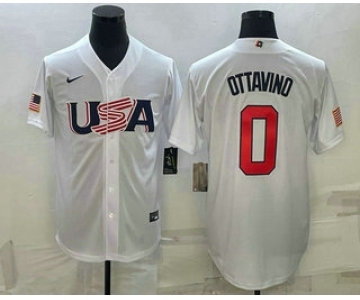 Men's USA Baseball #0 Adam Ottavino 2023 White World Baseball Classic Stitched Jerseys