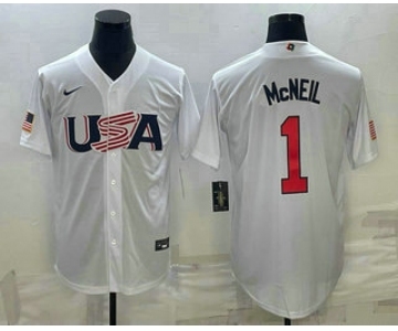 Men's USA Baseball #1 Jeff McNeil 2023 White World Classic Stitched Jersey