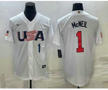 Men's USA Baseball #1 Jeff McNeil Number 2023 White World Classic Stitched Jerseys