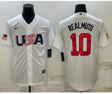 Men's USA Baseball #10 JT Realmuto 2023 White World Baseball Classic Stitched Jersey