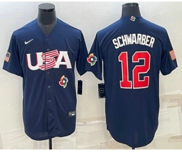 Men's USA Baseball #12 Kyle Schwarber 2023 Navy World Baseball Classic Stitched Jersey