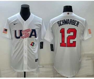 Men's USA Baseball #12 Kyle Schwarber 2023 White World Baseball Classic Stitched Jerseys