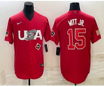 Men's USA Baseball #15 Bobby Witt Jr 2023 Red World Baseball Classic Stitched Jerseys