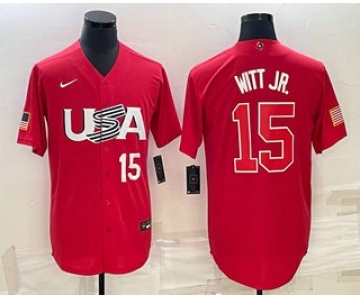 Men's USA Baseball #15 Bobby Witt Jr Number 2023 Red World Baseball Classic Stitched Jerseys