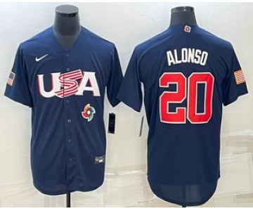 Men's USA Baseball #20 Pete Alonso 2023 Navy World Baseball Classic Stitched Jerseys