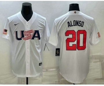 Men's USA Baseball #20 Pete Alonso 2023 White World Baseball Classic Stitched Jerseys