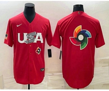 Men's USA Baseball 2023 Red World Big Logo With Patch Classic Stitched Jerseys
