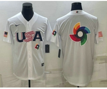 Men's USA Baseball 2023 White World Baseball Big Logo With Patch Classic Replica Stitched Jerseys