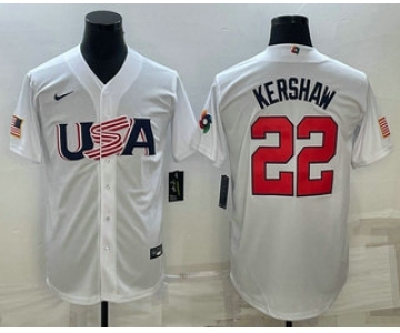 Men's USA Baseball #22 Clayton Kershaw 2023 White World Baseball Classic Stitched Jerseys