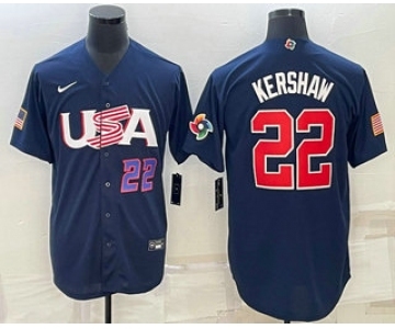 Men's USA Baseball #22 Clayton Kershaw Number 2023 Navy World Baseball Classic Stitched Jersey