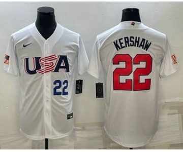 Men's USA Baseball #22 Clayton Kershaw 2023 White World Baseball Classic Stitched Jerseys