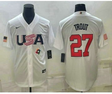 Men's USA Baseball #27 Mike Trout 2023 White World Baseball Classic Replica Stitched Jersey