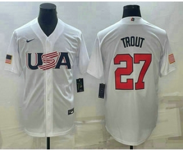 Men's USA Baseball #27 Mike Trout 2023 White World Baseball Classic Replica Stitched Jerseys