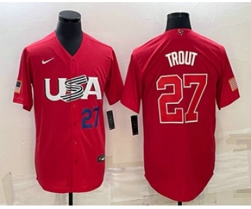 Men's USA Baseball #27 Mike Trout Number 2023 Red World Classic Stitched Jerseys