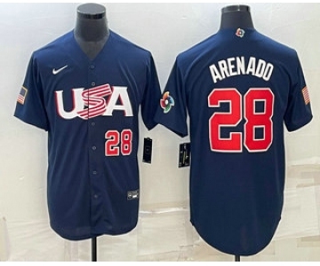 Men's USA Baseball #28 Nolan Arenado Number 2023 Navy World Baseball Classic Stitched Jersey