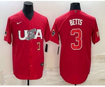 Mens USA Baseball #3 Mookie Betts Number 2023 Red World Classic Stitched Jersey