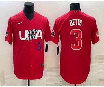 Men's USA Baseball #3 Mookie Betts Number 2023 Red World Classic Stitched Jersey1