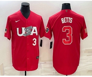 Men's USA Baseball #3 Mookie Betts Number 2023 Red World Classic Stitched Jerseys