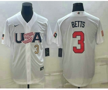 Men's USA Baseball #3 Mookie Betts Number 2023 White World Baseball Classic Replica Stitched Jersey