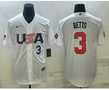 Men's USA Baseball #3 Mookie Betts Number 2023 White World Baseball Classic Replica Stitched Jerseys