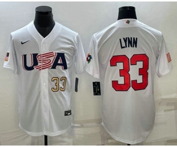 Men's USA Baseball #33 Lance Lynn Number 2023 White World Baseball Classic Stitched Jerseys
