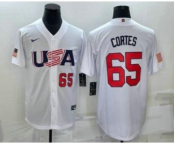 Men's USA Baseball #65 Nestor Cortes Number 2023 White World Classic Stitched Jersey