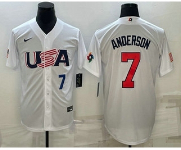 Men's USA Baseball #7 Tim Anderson Number 2023 White World Baseball Classic Stitched Jerseys