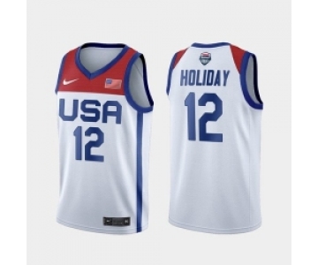 Men's USA Team #12 Jrue Holiday Home White 2021 Tokyo Olympics Jersey