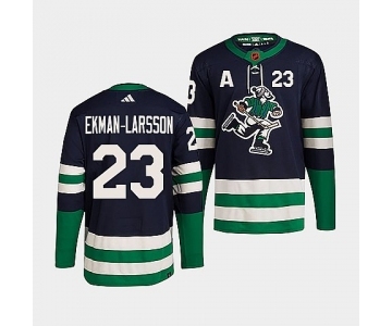 Men's Vancouver Canucks #23 Oliver Ekman-Larsson Navy 2022 Reverse Retro Stitched Jersey