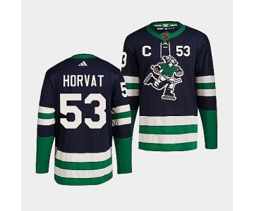 Men's Vancouver Canucks #53 Bo Horvat Navy 2022 Reverse Retro Stitched Jersey