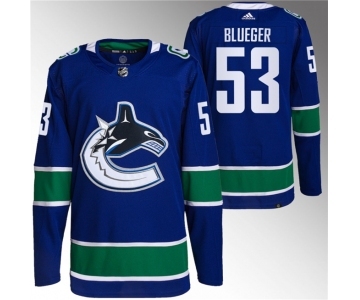 Men's Vancouver Canucks #53 Teddy Blueger Blue Retro Stitched Jersey