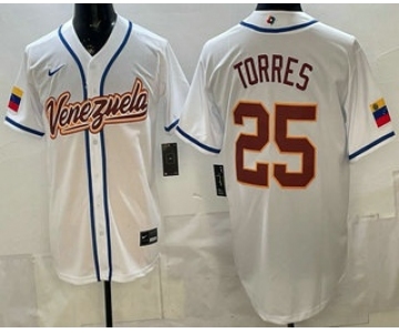 Men's Venezuela #25 Gleyber Torres White 2026 World Baseball Classic Cool Base Jersey