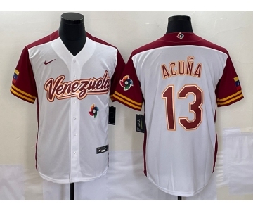 Men's Venezuela Baseball #13 Ronald Acuna Jr 2023 White Red World Classic Stitched Jerseys