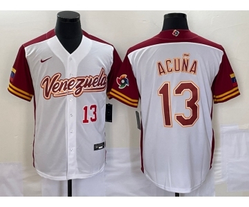 Men's Venezuela Baseball #13 Ronald Acuna Jr 2023 White Red World Classic Stitched Jersey