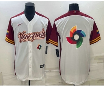 Men's Venezuela Baseball 2023 White World Big Logo With Patch Classic Stitched Jersey