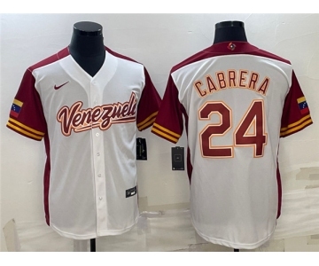 Men's Venezuela Baseball #24 Miguel Cabrera 2023 White World Baseball Classic Stitched Jersey
