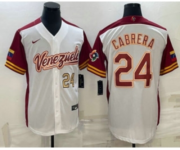 Men's Venezuela Baseball #24 Miguel Cabrera 2023 White World Baseball Classic Stitched Jersey