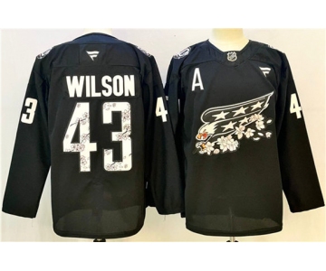Men's Washington Capitals #43 Tom Wilson Black Cherry Blossom With A Patch Stitched Hockey Jersey