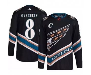 Men's Washington Capitals #8 Alex Ovechkin Black 2022-23 Reverse Retro Stitched Jersey
