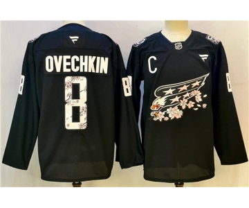 Men's Washington Capitals #8 Alex Ovechkin Black Cherry Blossom With C Patch Stitched Hockey Jersey
