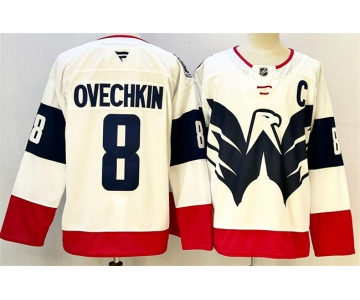 Men's Washington Capitals #8 Alexander Ovechkin White Navy With C Patch Stadium Series Stitched Hockey Jersey