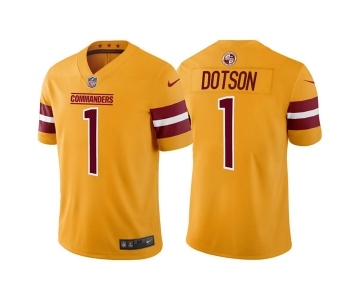 Men's Washington Commanders #1 Jahan Dotson Gold Vapor Untouchable Stitched Football Jersey