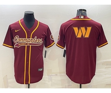 Men's Washington Commanders Blank Burgundy With Patch Cool Base Stitched Baseball Jersey