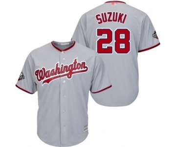 Men's Washington Nationals #28 Kurt Suzuki Replica Grey Road Cool Base 2019 World Series Bound Baseball Jersey