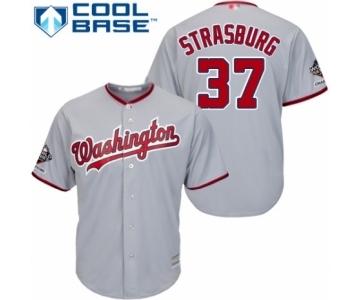 Men's Washington Nationals #37 Stephen Strasburg Replica Grey Road Cool Base 2019 World Series Champions Baseball Jersey