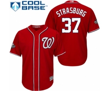 Men's Washington Nationals #37 Stephen Strasburg Replica Red Alternate 1 Cool Base 2019 World Series Bound Baseball Jersey