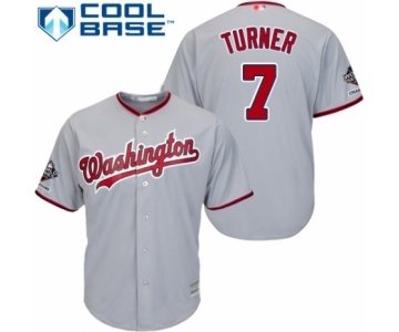 Men's Washington Nationals #7 Trea Turner Replica Grey Road Cool Base 2019 World Series Champions Baseball Jersey