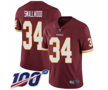 Men's Washington Redskins #34 Wendell Smallwood Burgundy Red Team Color Vapor Untouchable Limited Player 100th Season Football Jersey