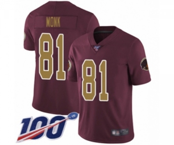 Men's Washington Redskins #81 Art Monk Burgundy Red Gold Number Alternate 80TH Anniversary Vapor Untouchable Limited Player 100th Season Football Jersey