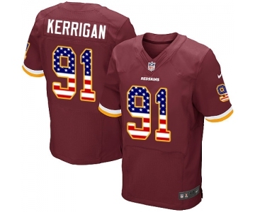 Men's Washington Redskins #91 Ryan Kerrigan Elite Burgundy Red Home USA Flag Fashion Football Jersey